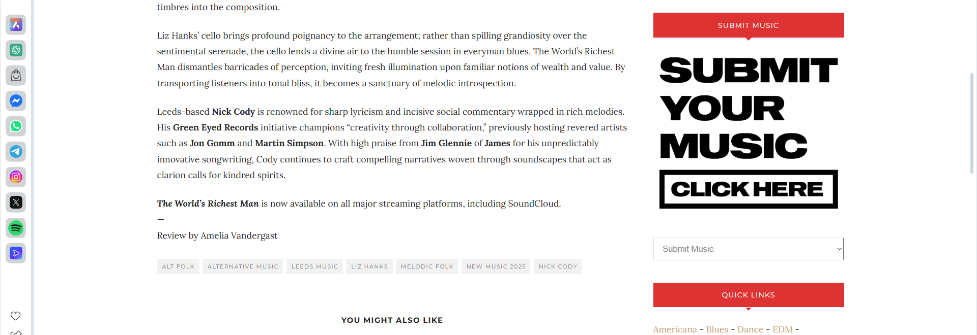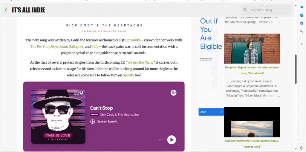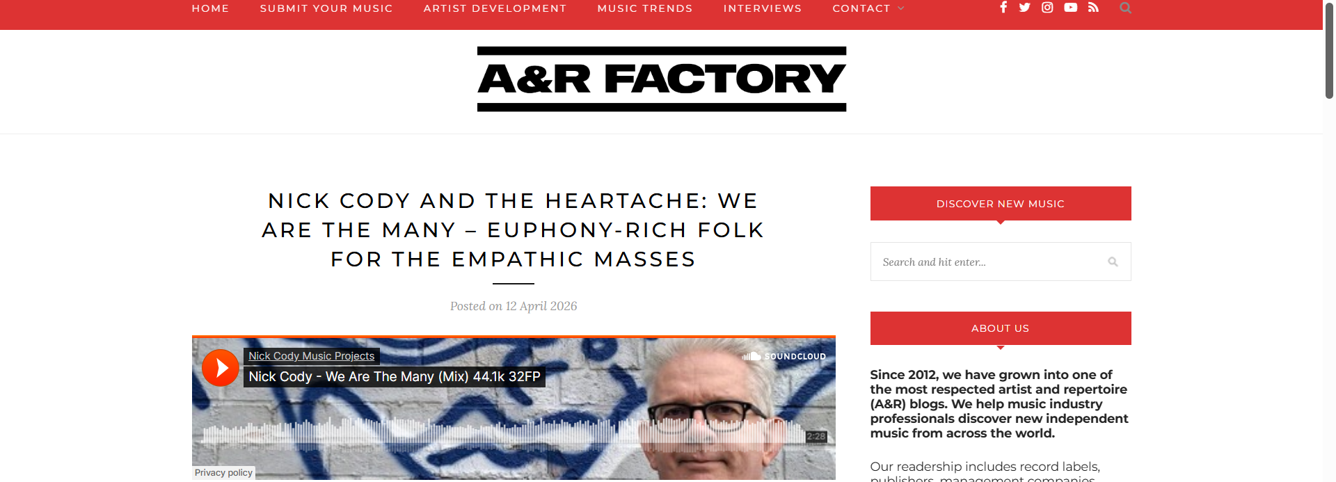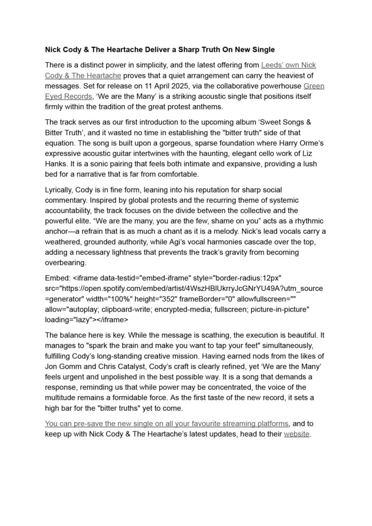 day protest, Nick Cody remains a vital voice in the independent scene. Be sure to catch
