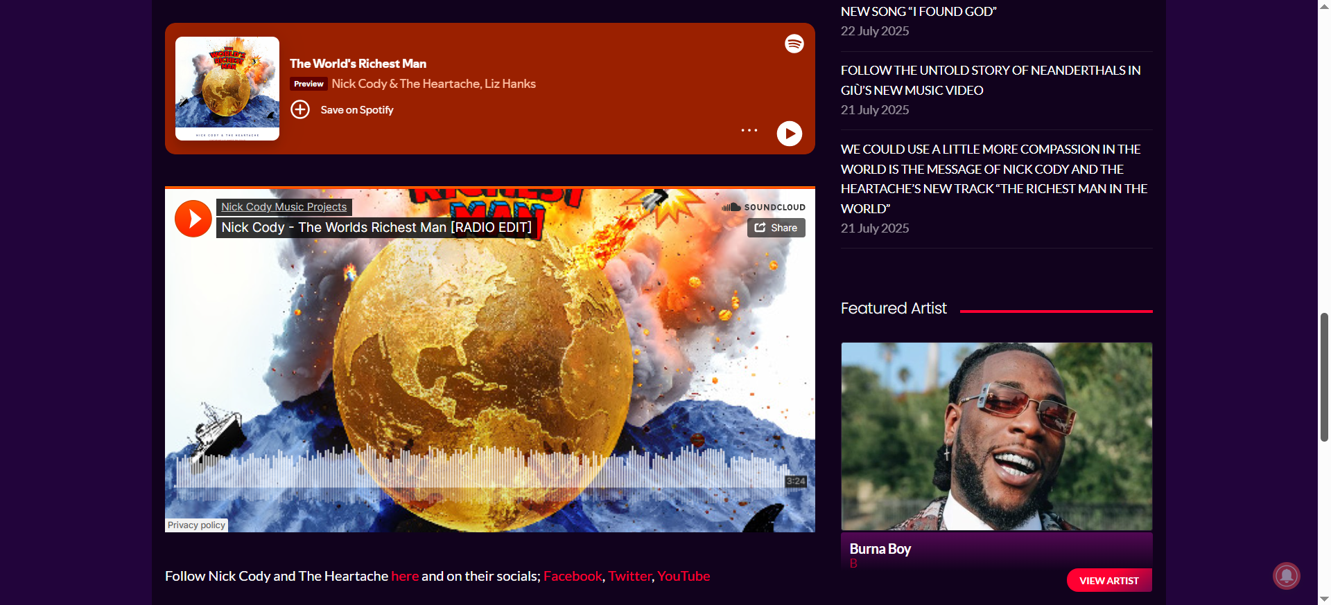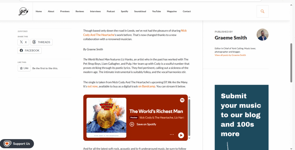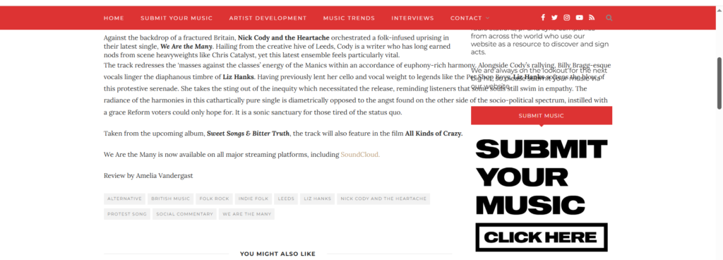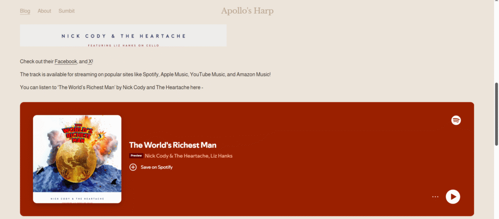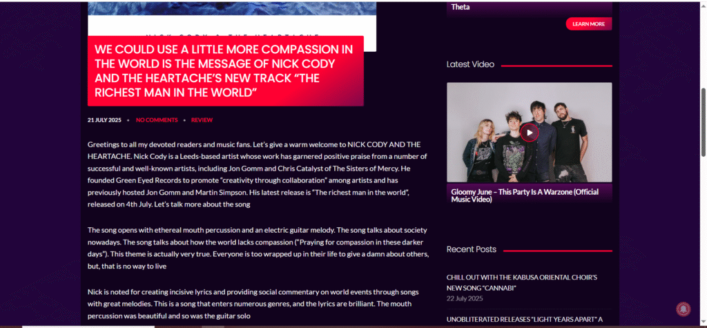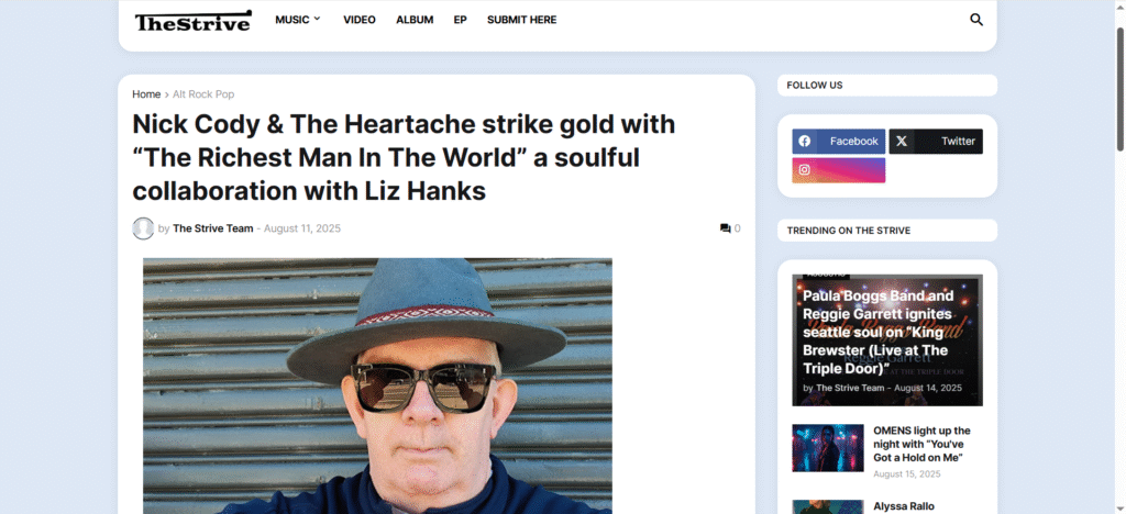 You can join Nick Cody & The Heartache on their website, where you can hear all the