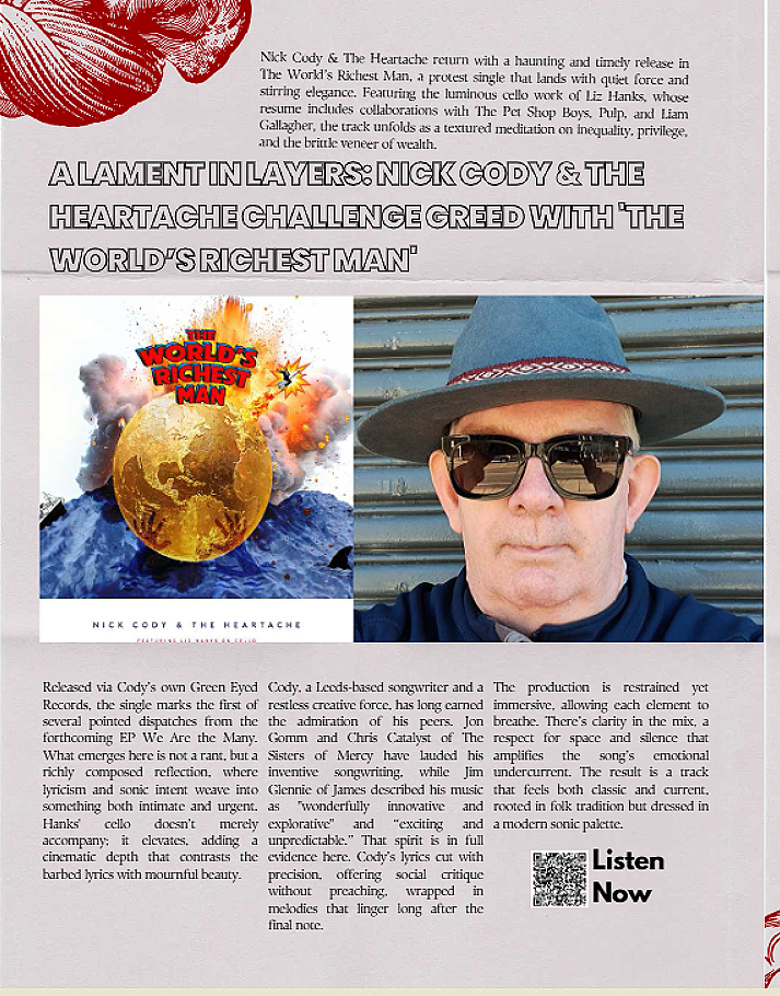 “UK singer-songwriter Nick Cody is set to unleash his forthcoming album, “All is Fine Until the World Goes Pop”; the plaintive piano mockery of the state of our being at this crushing crux of humanity”